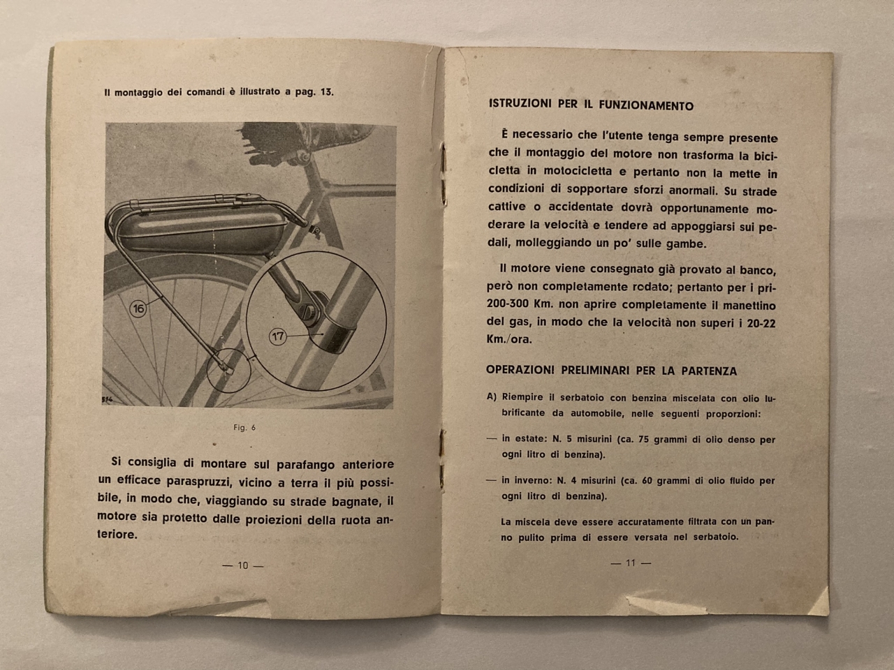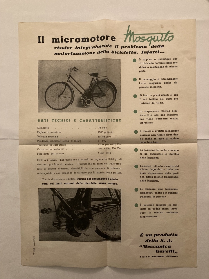 Originální návod na obsluhu motocyklu Mosquito v italském jazyce.