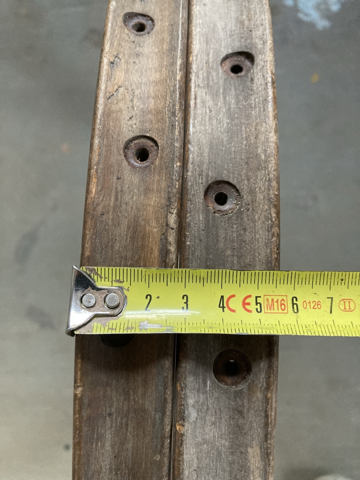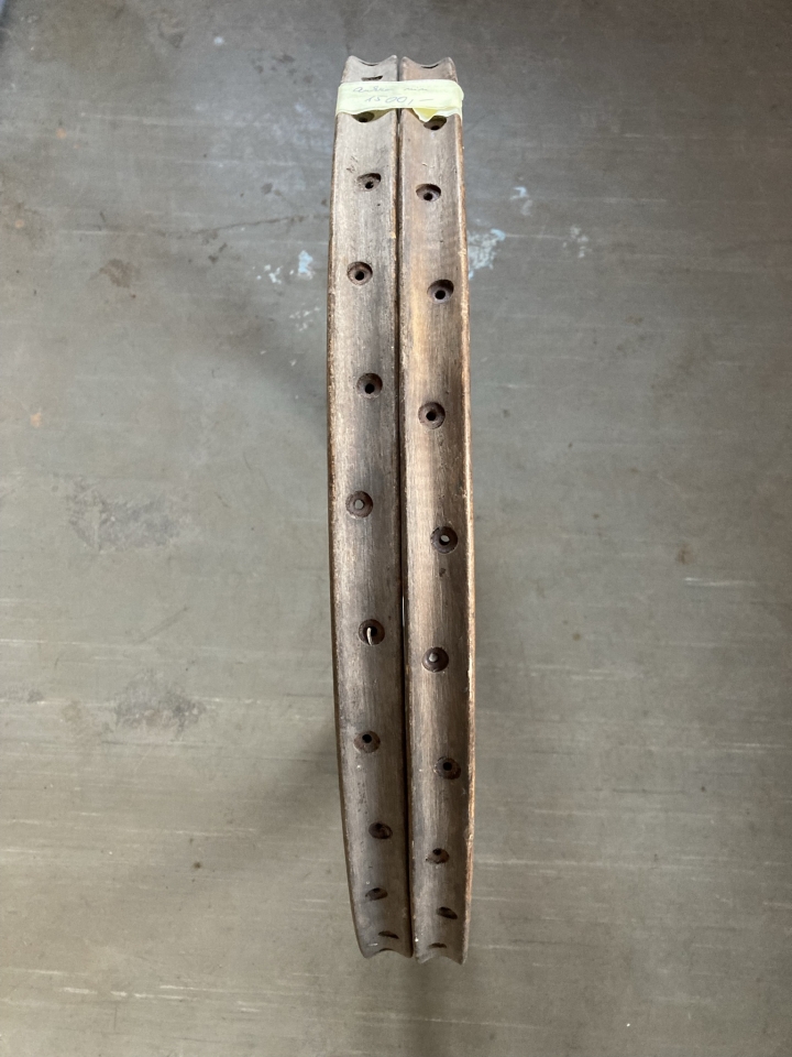 Originální dřevěné ráfky o průměru 22 palců (57 cm) . Stav viz foto.